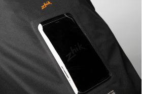 正面にはスマートフォンが入るクリアポケットが付いているので、バッグから出さずにスマートフォンを操作できます。