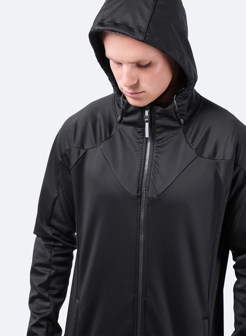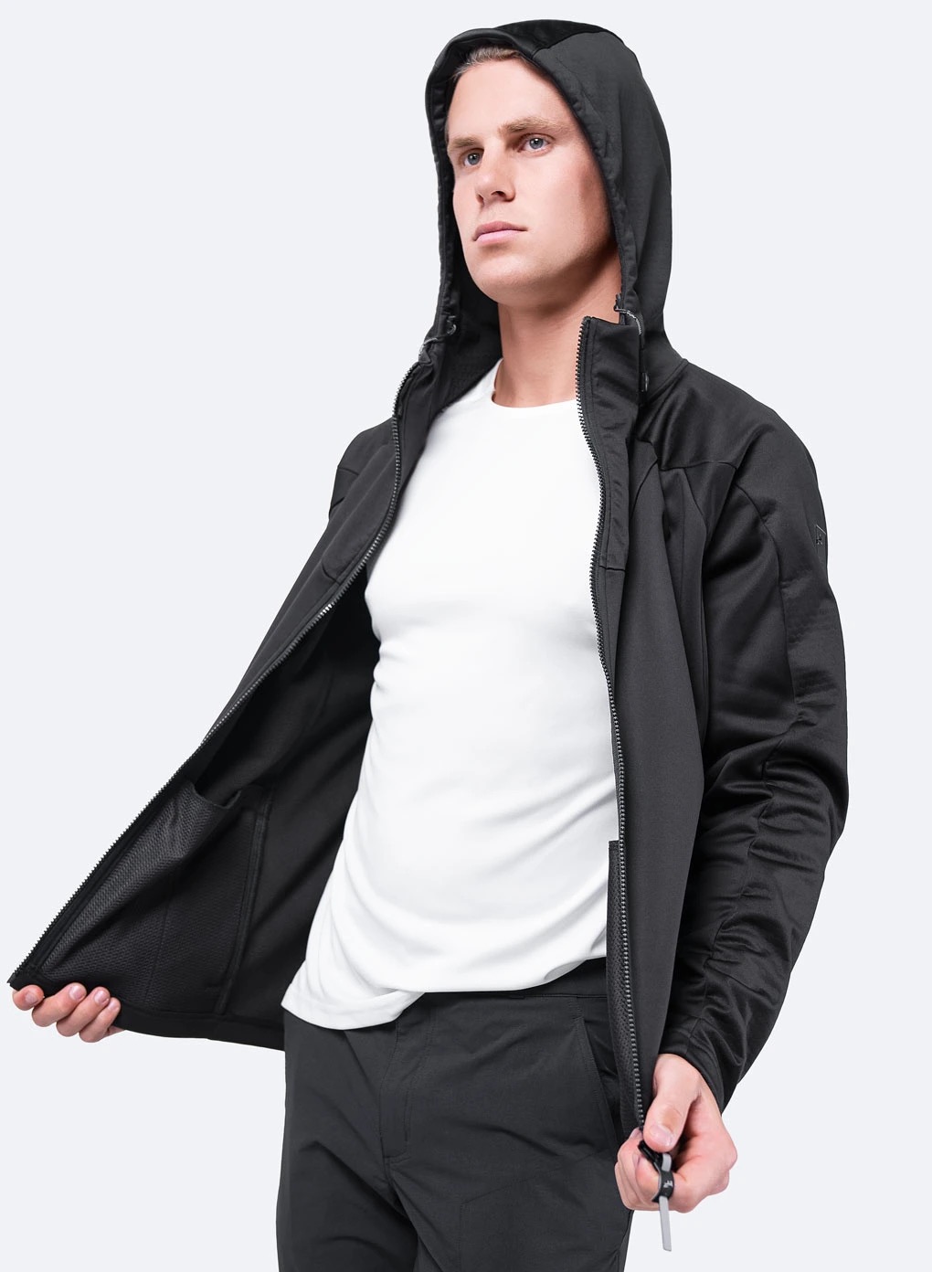 • ストレッチに優れた防風防水の3レイヤーファブリックをフードとスリーブのパネルに使用