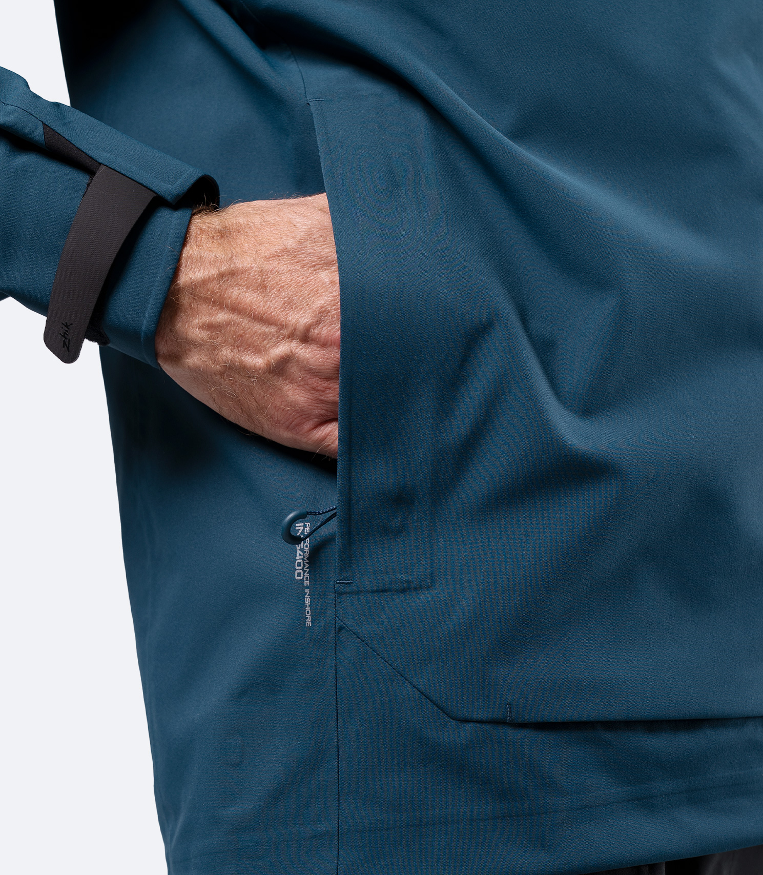 従来のインショア向けジャケットと比較してゆとりのあるサイズ感ですが、丈が絞れるので着込んでも動きを損ねません。